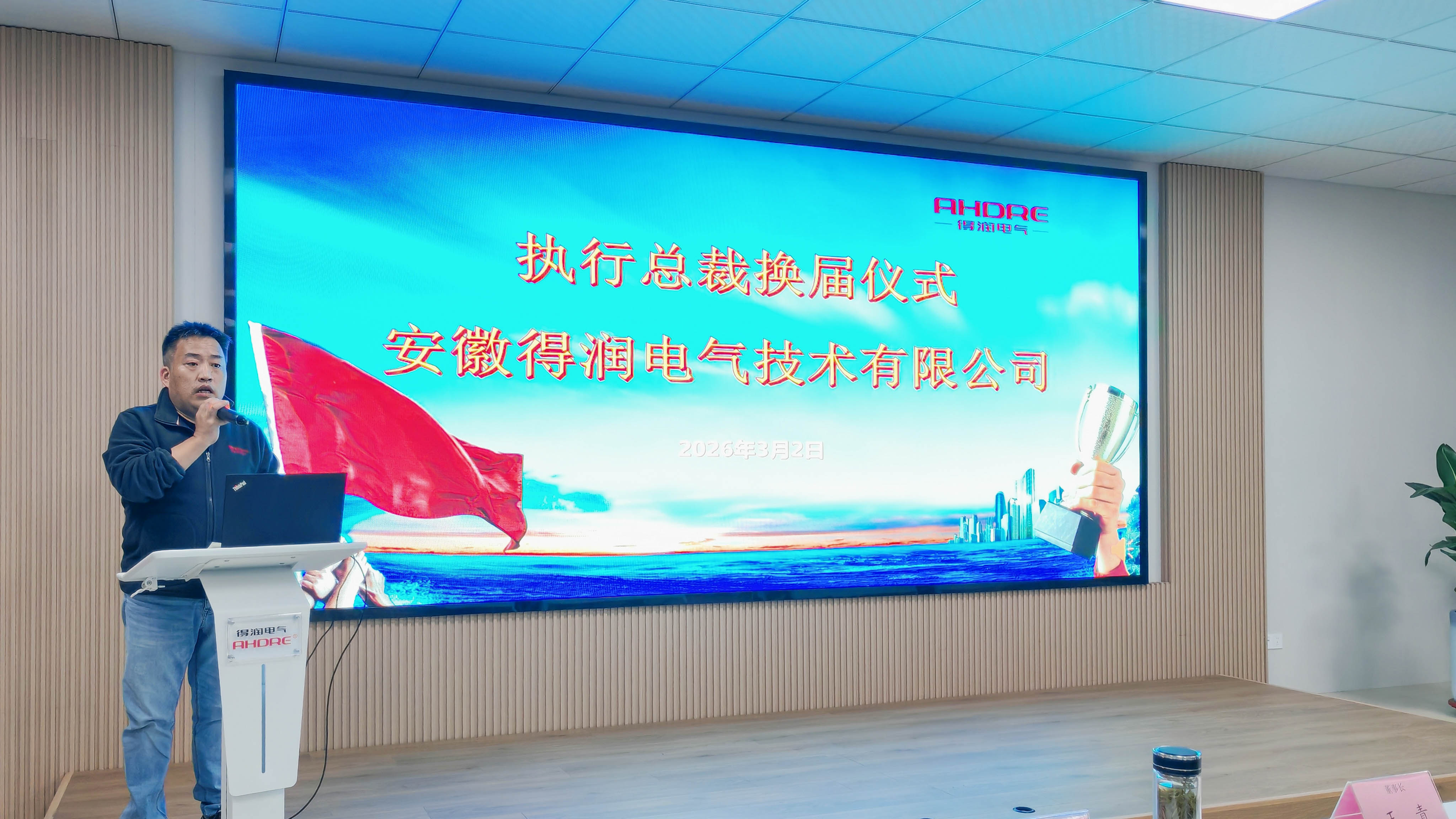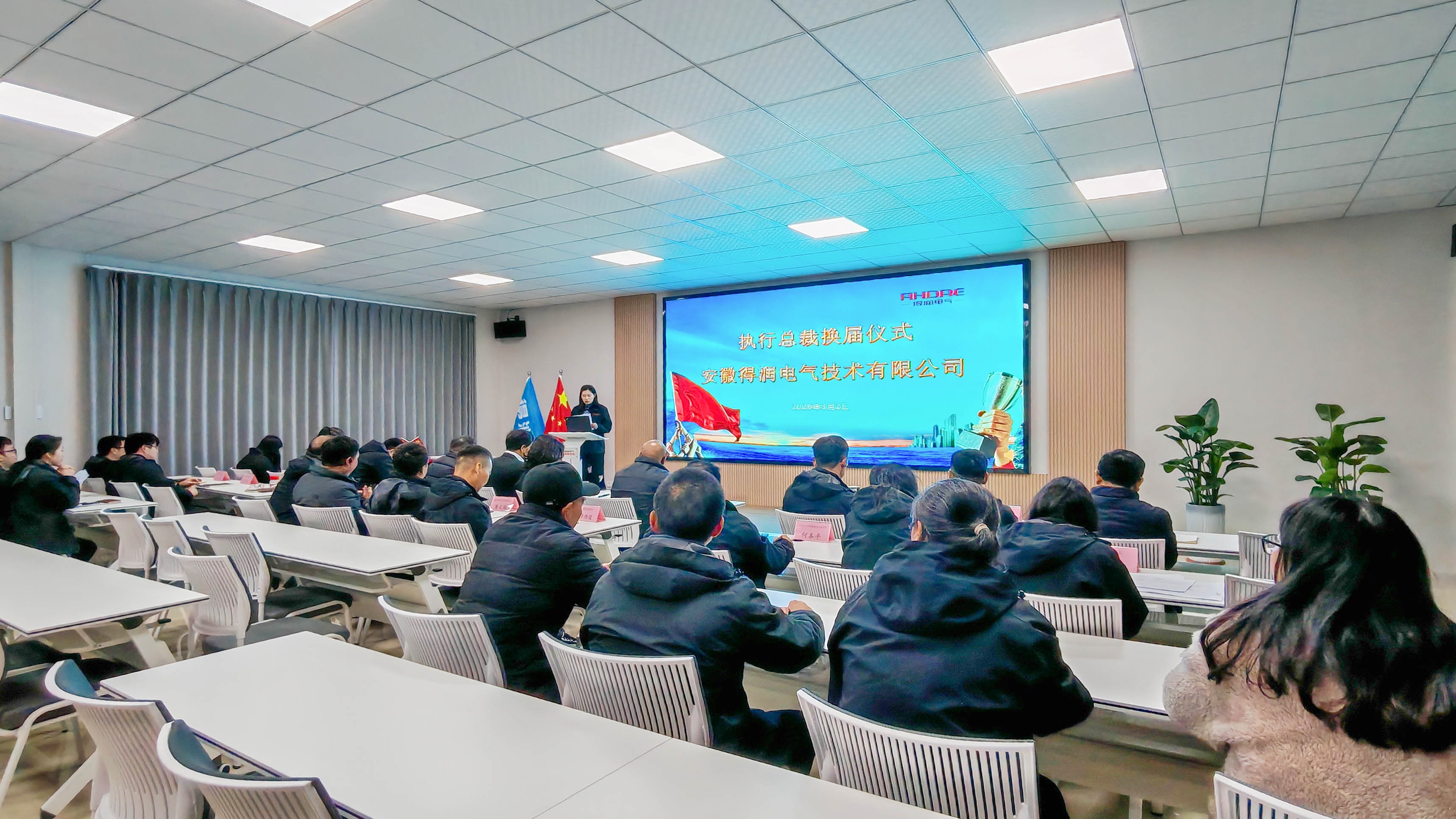 3月2日下午,得潤電氣輪值執(zhí)行總裁換屆儀式在公司二樓培訓(xùn)室隆重舉行。公司高層領(lǐng)導(dǎo)、各部門負責(zé)人及員工代表齊聚一堂,共同見證這一凝聚共識、傳遞使命的重要時刻。儀式在莊重而熱烈的氛圍中拉開帷幕,嚴格遵循既定議程推進,彰顯了公司制度化、規(guī)范化管理的持續(xù)推進。