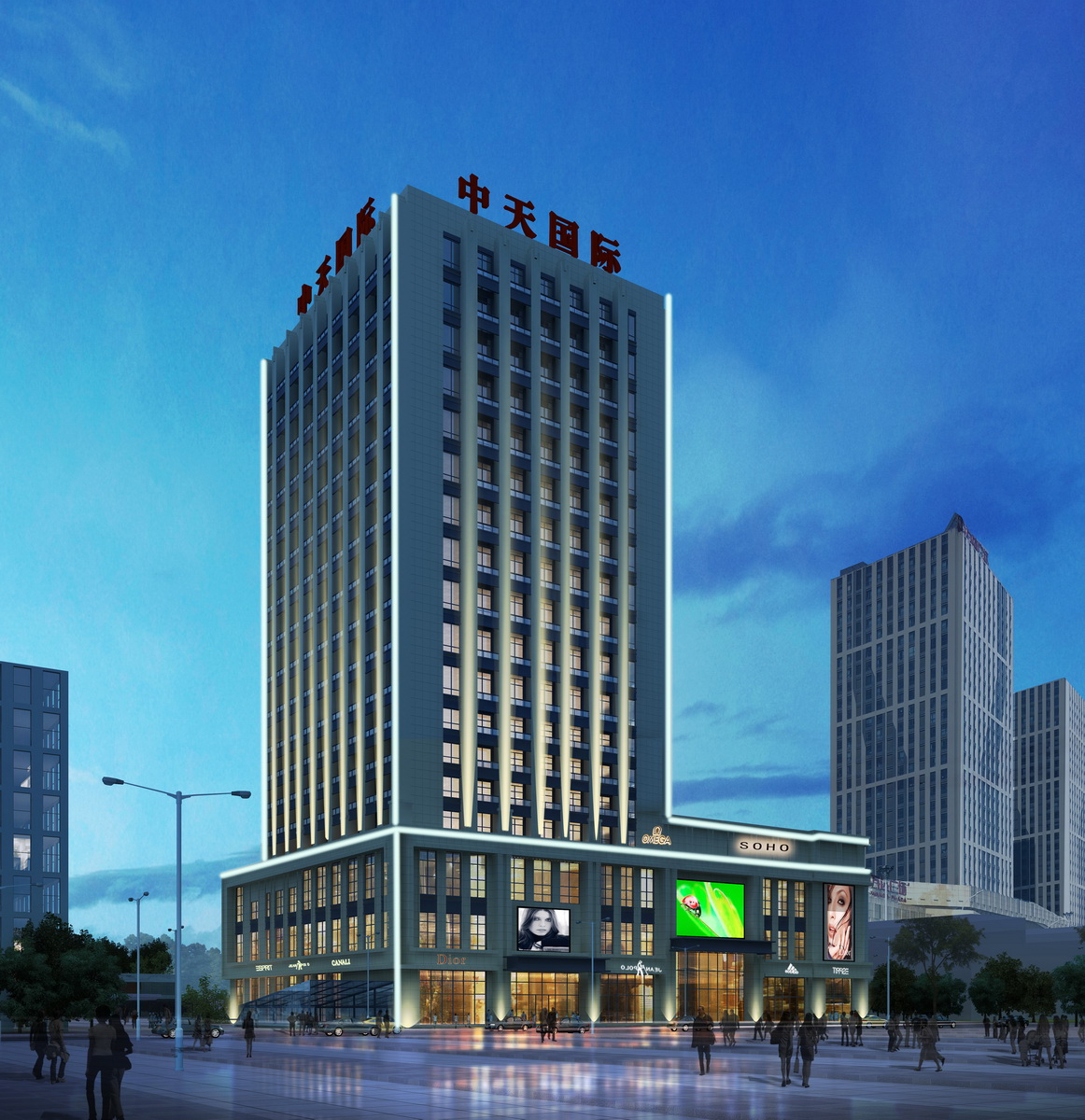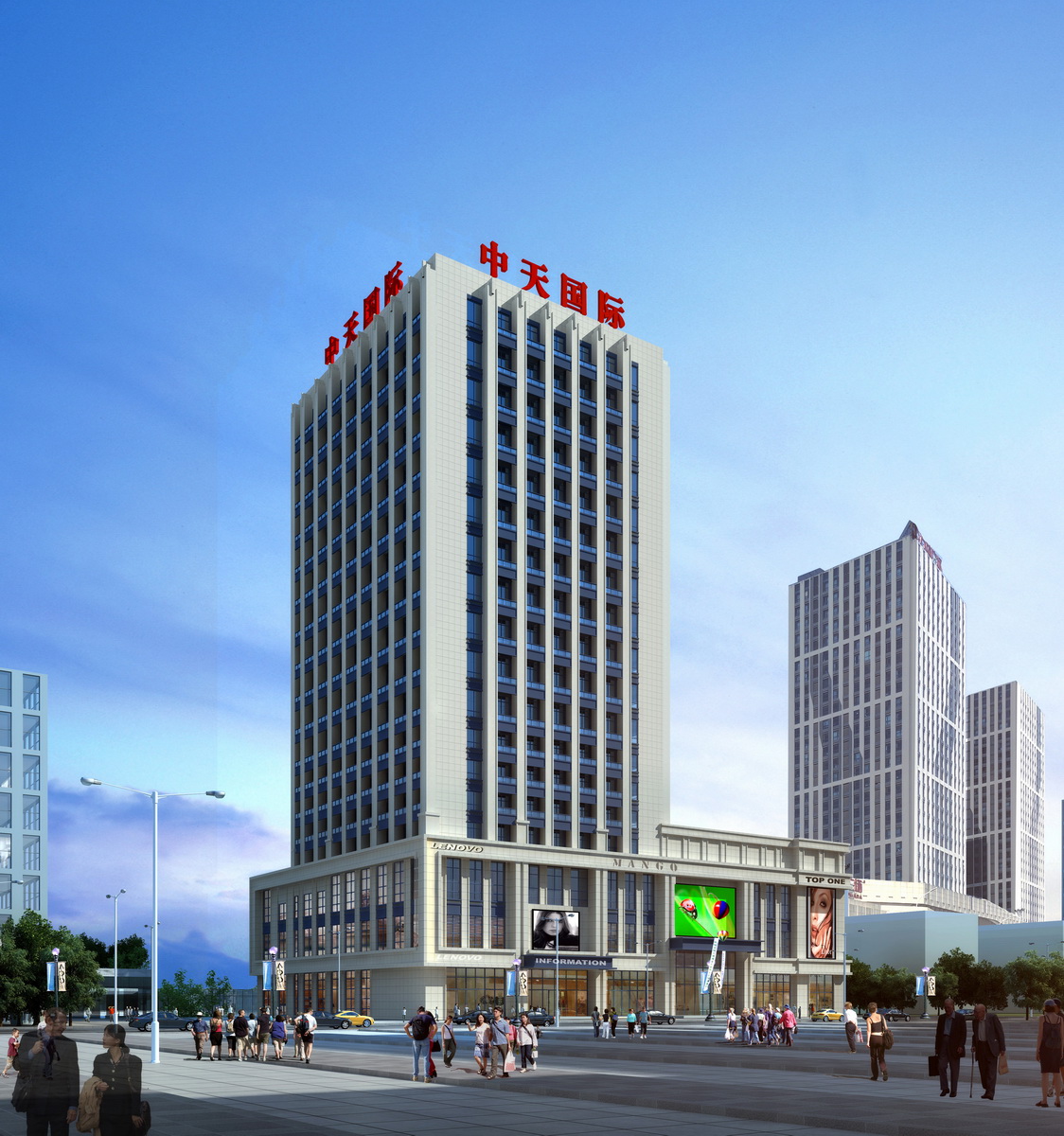 中天國際由中天集團(tuán)投資,營口天達(dá)發(fā)展有限公司開發(fā)建設(shè),項目坐落于渤海大街南,小八路北與市府路西交匯處,是一座集商業(yè)、餐飲、高端酒店、奢華配套公寓等的商業(yè)一體化項目。