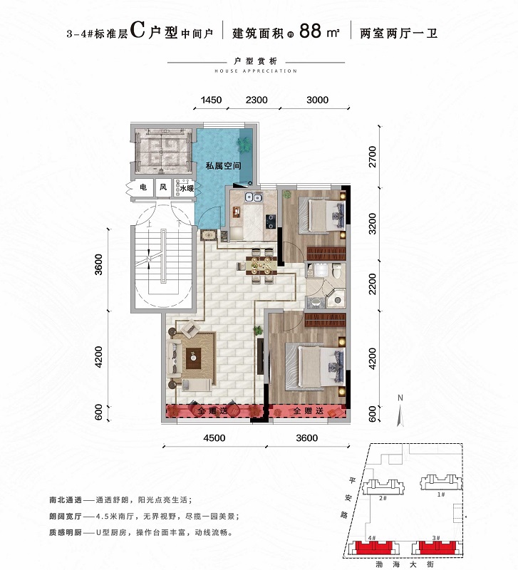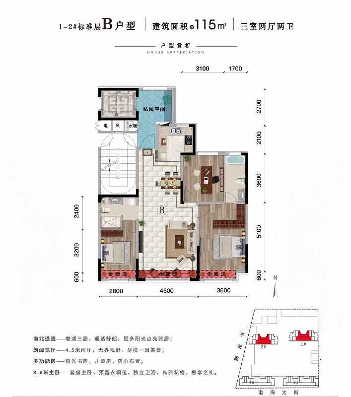 中天御品項目位于營口市渤海大街與平安路交會處,地處西市區(qū)核心位置,營口主城區(qū)的交通要道,地理位置十分優(yōu)越。行政配套遍布項目周邊,商業(yè)配套齊全滿足您日常購物所需。 項目占地面積1.6萬㎡,建筑面積3.7萬 ㎡,整體由4棟17層新中式雅居小高層組成,配有商鋪及車庫/車位,完全人車分流設(shè)計。 戶型種類齊全,面積區(qū)間從88平到118平,從兩室兩廳一衛(wèi)到三室兩廳兩衛(wèi)。全部戶型均為南北通透的五明戶型設(shè)計。