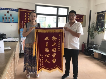 7月26日中天尚品小區(qū)1號樓15樓楊鵬業(yè)主拿著錦旗來到物業(yè)辦公室,錦旗上面寫著“物業(yè)好管家,業(yè)主貼心人”,原來業(yè)主家只有一位老人和女兒居住,家里一些簡單的水電零活都不能自己維修。此次特來感謝物業(yè)多次幫助家里處理漏水,電線短路等問題,這些雖然都是小事,卻讓業(yè)主感動在心。
