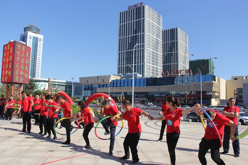 “激情傳遞”每隊(duì)10人。比賽開始前,所有隊(duì)員手拉手平舉排成一隊(duì),從一端一個(gè)人的手中將第一個(gè)呼啦圈進(jìn)行依次專遞,直至第5個(gè)呼啦圈傳遞到隊(duì)伍的最后一個(gè)人手中。本項(xiàng)目考驗(yàn)的是團(tuán)員之間團(tuán)結(jié)協(xié)作的能力,遼陽(yáng)公司以絕對(duì)的優(yōu)勢(shì)取得第一名,萬豪酒店和集團(tuán)機(jī)關(guān)分列二、三名。