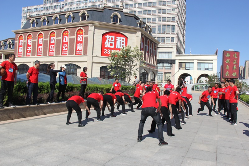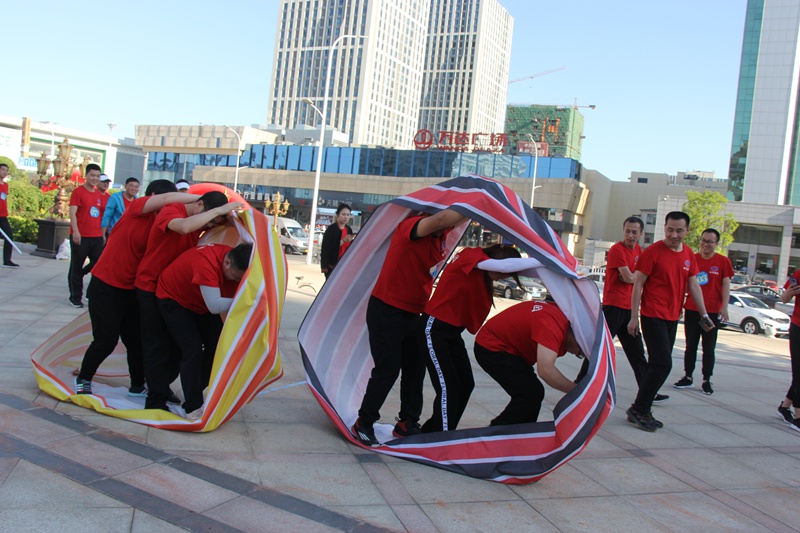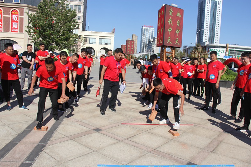 “協(xié)作過河”每隊(duì)5人六塊磚,從出發(fā)點(diǎn)到最后一名過河完畢,任何人腳不能落地,直至最后一個(gè)人一塊磚到達(dá)終點(diǎn)。這項(xiàng)比賽不僅需要合理安排好隊(duì)形,保持穩(wěn)定,還要講究遞磚的方法,以便節(jié)省時(shí)間。最終商業(yè)公司獲得了該項(xiàng)目的冠軍,天華公司和遼陽(yáng)公司取得第二、三名。