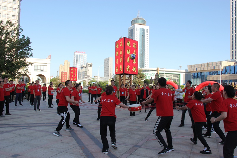 5月31日下午,中天集團(tuán)第三屆職工運(yùn)動(dòng)會(huì)如期舉行。只見在中天市府廣場(chǎng)上,彩旗飛揚(yáng),鑼鼓喧天,來自于集團(tuán)機(jī)關(guān)、天華公司、天泰公司、遼陽(yáng)公司、盤錦公司、萬豪酒店、物業(yè)公司、農(nóng)貿(mào)公司、商業(yè)公司、建筑公司十支代表隊(duì)的300多名員工匯集在這里,釋放激情,揮灑汗水,盡情享受著中天集團(tuán)的體育盛宴。這不僅僅是一次風(fēng)貌的展示,也是中天集團(tuán)活力的展示,更是企業(yè)形象的大展示。