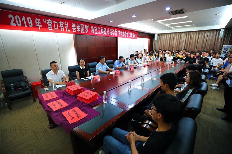 8月20日下午,2019年“營(yíng)口有禮 善舉圓夢(mèng)”希望工程助學(xué)活動(dòng)暨“中天助學(xué)金”發(fā)放儀式在中天集團(tuán)總部會(huì)議室舉行。