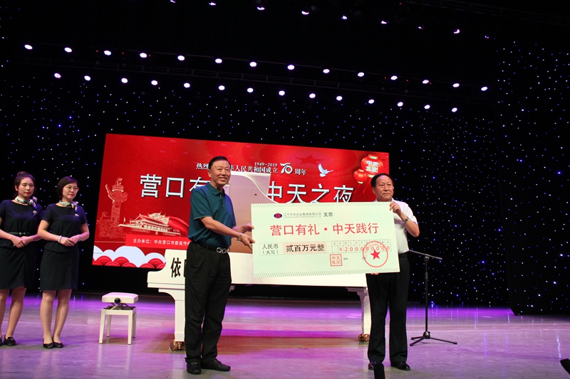 為紀(jì)念中華人民共和國成立70周年,9月9日晚,中天集團(tuán)攜手中共營口市委宣傳部,在遼河大劇院共同舉行“營口有禮·中天之夜”紅色經(jīng)典系列音樂會(huì)?;顒?dòng)當(dāng)晚,集團(tuán)董事長于寶權(quán)向營口市慈善總會(huì)捐贈(zèng)200萬元,用做“營口有禮”專項(xiàng)基金。營口市委常委、市委秘書長王百勝,市委常委、宣傳部部長肖力,市人大常委會(huì)副主任徐啟,副市長金莉,市政協(xié)副主席馬春山,集團(tuán)董事長于寶權(quán),總經(jīng)理于洪波,西市區(qū)區(qū)委、區(qū)人大、區(qū)政府、區(qū)政協(xié)等領(lǐng)導(dǎo)及首屆禮德榜樣代表,與集團(tuán)員工和業(yè)主代表等近千人共饗音樂盛宴,踐行“雷鋒精神,營口有禮”。
