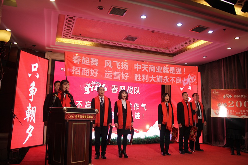 2019年12月18日,中天集團(tuán)在萬(wàn)豪酒店舉行2020年“開(kāi)門(mén)紅”啟動(dòng)儀式。集團(tuán)于寶權(quán)董事長(zhǎng)、于洪波總經(jīng)理,周春雷、于洪濤副總經(jīng)理以及各分子公司領(lǐng)導(dǎo)班子成員共計(jì)100余人參加大會(huì)。
