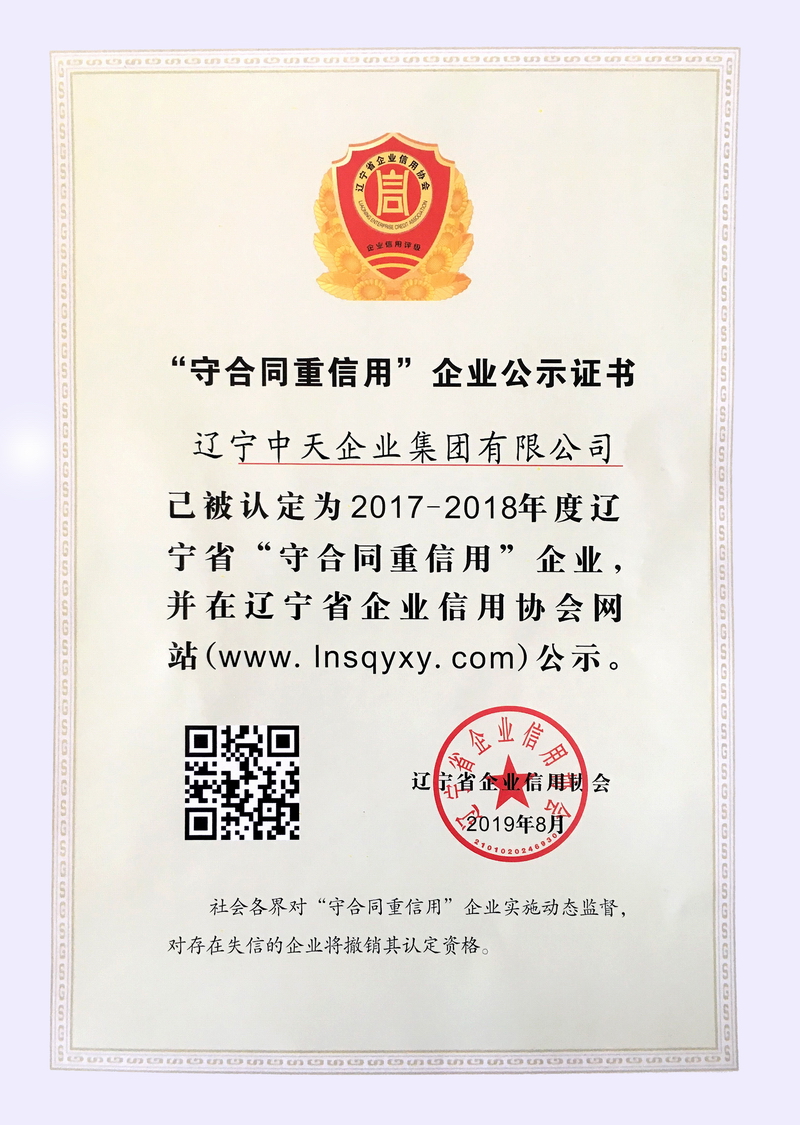 企業(yè)在追求自身發(fā)展的同時(shí),自覺(jué)承擔(dān)社會(huì)責(zé)任,主動(dòng)納稅,截止2019年12月31日,集團(tuán)全年納稅11667萬(wàn)元,上交社會(huì)保險(xiǎn)金額256.64萬(wàn)元,對(duì)地方財(cái)政增收貢獻(xiàn)了力量,連續(xù)多年成為區(qū)、市納稅明星企業(yè)。8月,被遼寧省企業(yè)信用協(xié)會(huì)評(píng)為“守合同重信用”企業(yè),這是中天集團(tuán)連續(xù)15年蟬聯(lián)此項(xiàng)殊榮。