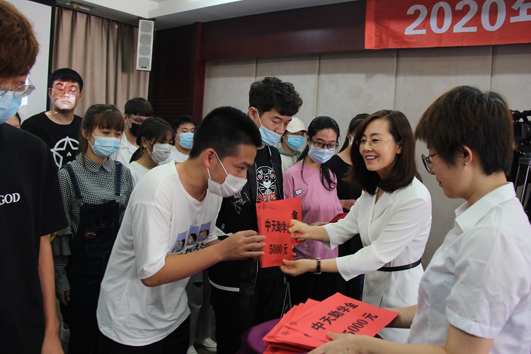 現(xiàn)場,各位同學做自我介紹情況后,李人杰書記、于寶權(quán)董事長、徐志剛主任和于洪波總裁等領導分別將助學金發(fā)放到每位同學的手中。