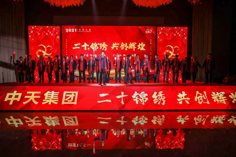 2021年1月31日,中天集團(tuán)在中天國(guó)際酒店隆重聚會(huì),慶祝企業(yè)成立二十周年。集團(tuán)于寶權(quán)董事長(zhǎng)、于洪波總裁、于洪濤執(zhí)行總裁、周春雷副總裁、孫繼莊副總裁等領(lǐng)導(dǎo)與500余名員工代表歡聚一堂,載歌載舞,歡慶企業(yè)走過二十年發(fā)展之路,慶祝企業(yè)發(fā)展建設(shè)取得的成果。合作單位、供應(yīng)商等100余名代表應(yīng)邀參加了慶典活動(dòng)。