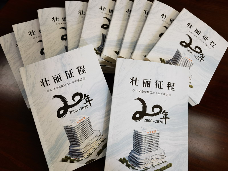 為了歸納和總結(jié)集團(tuán)二十年發(fā)展歷程,集團(tuán)決定在慶祝中天集團(tuán)成立二十周年之際,出版印刷一本書(shū),將企業(yè)二十年發(fā)展建設(shè)所發(fā)生的大事歸納起來(lái),形成一本書(shū),為二十年紀(jì)念活動(dòng)獻(xiàn)禮。本書(shū)于寶權(quán)董事長(zhǎng)親自策劃,行政人力資源管理中心許文明總監(jiān)任總編輯。編輯部全面收集二十年來(lái),集團(tuán)發(fā)展歷程中所積累的大事,配上圖片,認(rèn)真進(jìn)行編輯。經(jīng)過(guò)反復(fù)研究,最終確定書(shū)名為《壯麗征程》。本書(shū)詳實(shí)記錄了二十年來(lái)集團(tuán)所發(fā)生的大事件,是集團(tuán)的一部發(fā)展史,記載二十年集團(tuán)發(fā)展的光輝