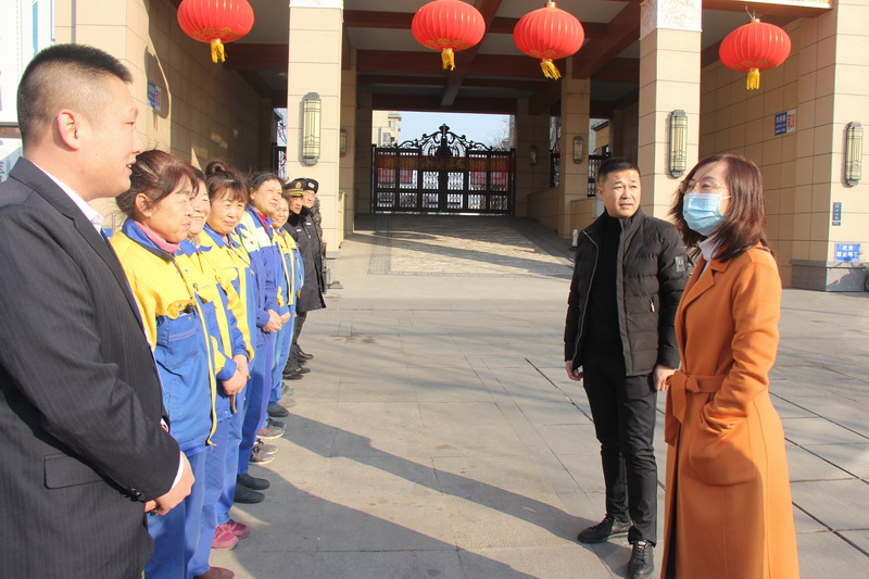 于總先后走訪營口城市公司旗下書香庭院、英倫名邸、玖樾府項目案場;酒店管理公司旗下萬豪酒店、中天國際酒店、桃花源精品酒店;中天農(nóng)貿(mào)書香庭院店、桃花源店;物業(yè)集團旗下御景華庭、桃花源、御荷苑、書香庭院、英倫名邸、中天國際小區(qū)。每到一地,于總都詳細了解單位的過節(jié)保障,以及一線員工的生活實際情況,同時深入到現(xiàn)場,與崗位上的職工對話,問寒問暖,送上貼心的關懷。