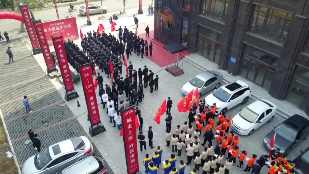 9點30分,中天集團第五屆全民徒步大會正式開始,近400人的徒步隊伍,揮舞著隊旗,以整齊的方陣、響亮的口號,浩浩蕩蕩從中天·書香庭院出發(fā),向著終點前進。本次活動參與者眾多,從活潑可愛的孩童、朝氣蓬勃的年輕人,到年富力強的中年人,再到精神矍鑠的老者,無不精神氣十足。11點25分,隨著第一支隊伍,浩浩蕩蕩的行至中天·玖樾府,本次徒步大會接近尾聲。