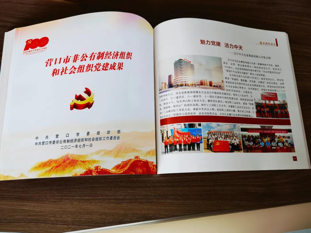2021年6月25日,營口市委組織部及營口市委非公有制經(jīng)濟(jì)組織和社會組織工作委員會在營口文化藝術(shù)中心舉行黨建成果發(fā)布會,并對黨建取得優(yōu)異成績的單位進(jìn)行隆重表彰。中天企業(yè)集團(tuán)黨支部獲得黨建促活力成果獎,大會現(xiàn)場進(jìn)行成果發(fā)布,受到營口市委的表獎。
