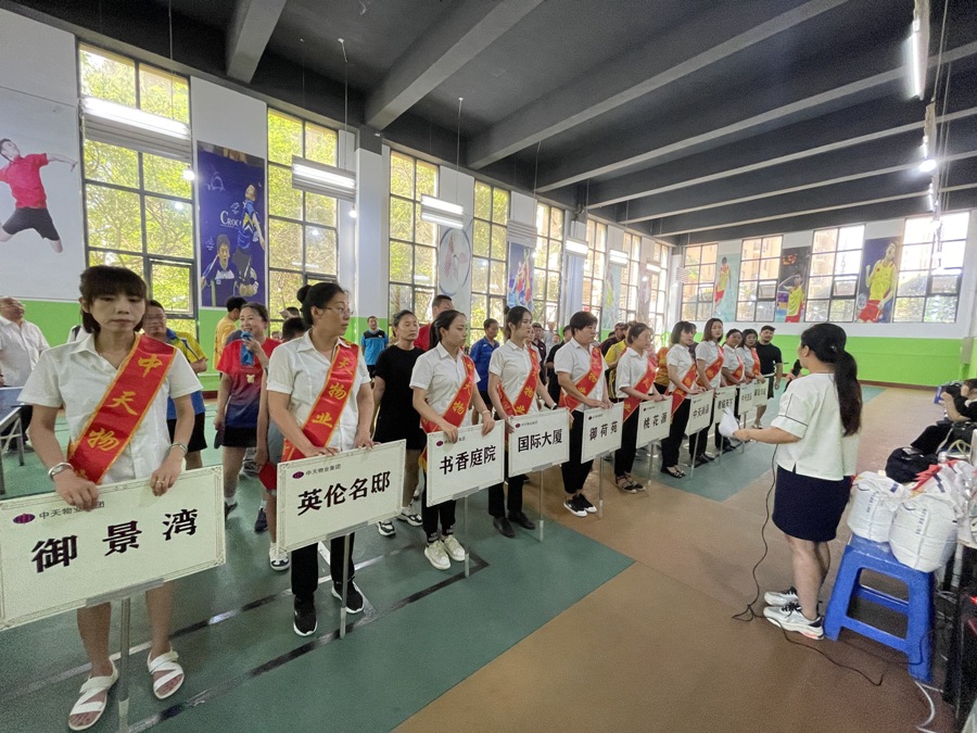 8:30分至9點(diǎn)是運(yùn)動(dòng)員檢錄時(shí)間,物業(yè)公司細(xì)心準(zhǔn)備了接待工作,檢錄完畢物業(yè)集團(tuán)總經(jīng)理王化啟向參賽選手致辭,隨后物業(yè)集團(tuán)總經(jīng)理助理富志剛帶領(lǐng)運(yùn)動(dòng)員進(jìn)行5分鐘熱身運(yùn)動(dòng),同時(shí)根據(jù)抽簽將對陣圖制作完畢,9點(diǎn)20分,比賽正式開始。