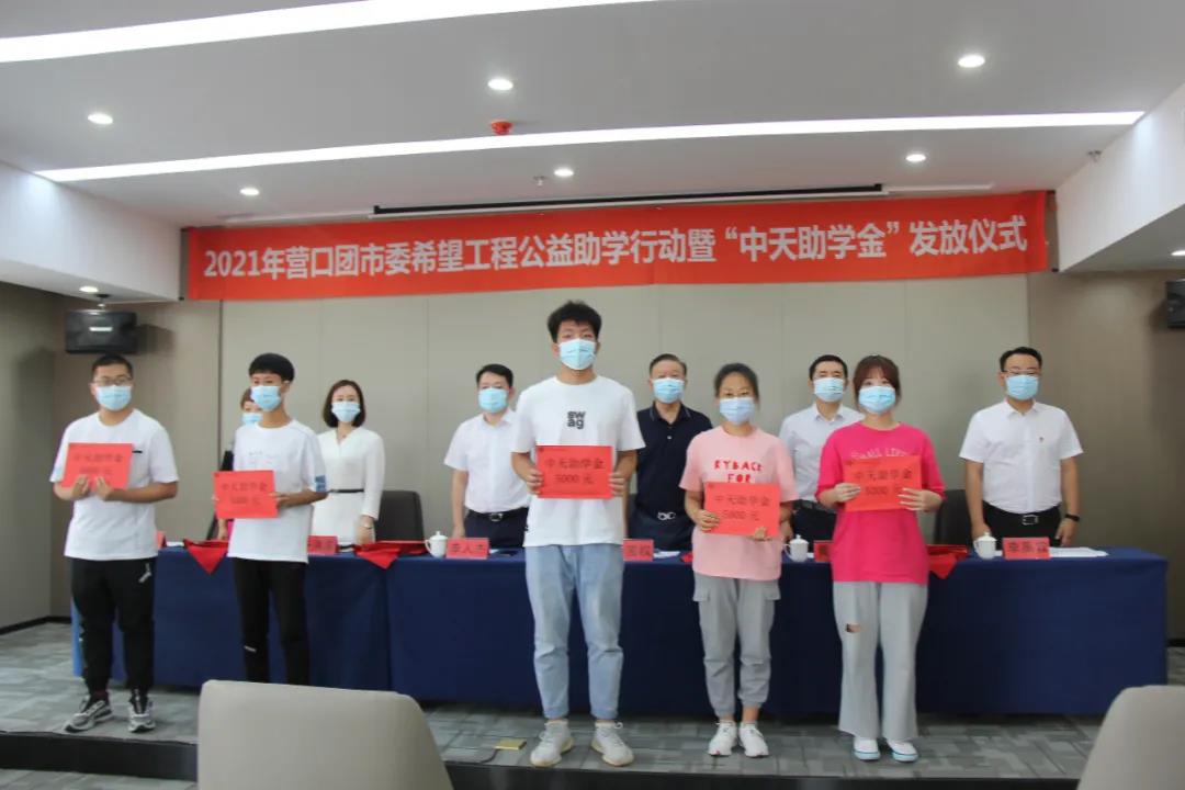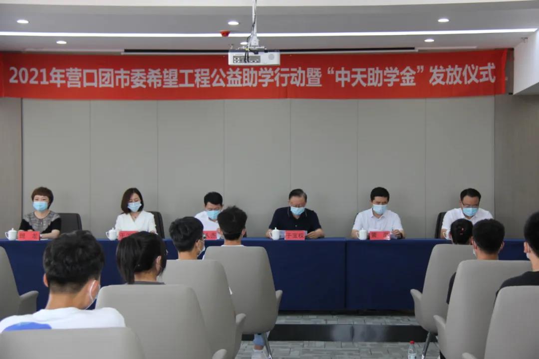 8月13日下午,2021年營口市希望工程公益助學活動暨“中天助學金”發(fā)放儀式在中天集團總部會議室舉行。營口團市委書記李人杰、副書記李禹霖,營口市慈善總會會長黃渤,市委教育工作委員會專職委員班龍,中天集團董事長于寶權、總裁于洪波、行政人力資源總監(jiān)許文明以及獲得資助的35名學生,出席了本次發(fā)放儀式。