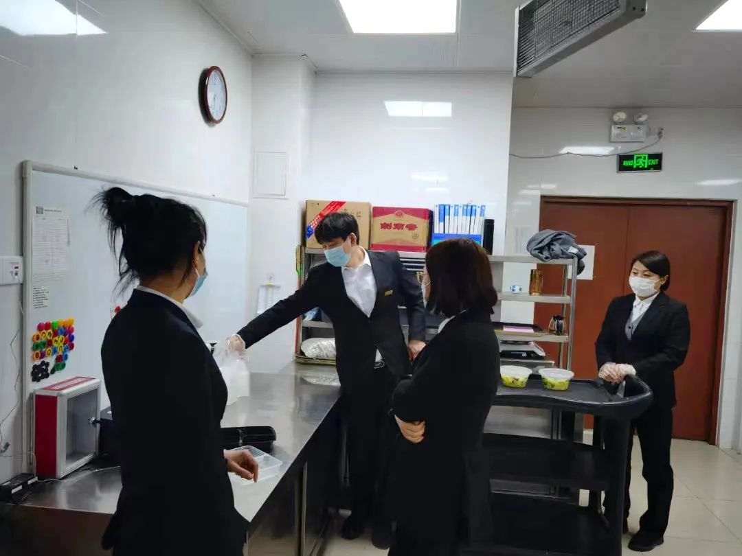 面對工作量激增、人員緊缺的突發(fā)情況,李敏總經(jīng)理身先士卒,帶領(lǐng)全體員工迅速投身防控一線,帶頭全面開展各項工作,在援營醫(yī)護隊伍下榻酒店之前,為他們做好食宿、消毒防疫等各方面的安排,提前完成90間客房的整理及消殺工作,確保住宿環(huán)境衛(wèi)生安全;對空調(diào)系統(tǒng)和熱水系統(tǒng)進行全面檢查并做好預(yù)熱工作,做好醫(yī)療隊用房保障;酒店成立24小時專職小分隊,照顧醫(yī)護人員日常生活,時刻與醫(yī)護人員們保持溝通,保障一線醫(yī)護人員需求。