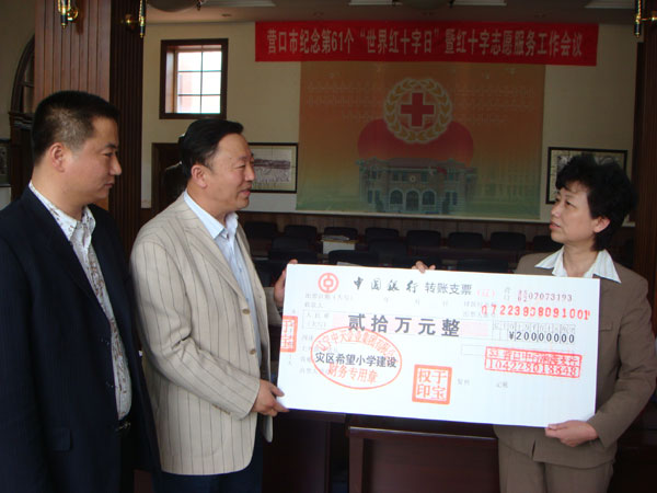 2008年5月,于寶權董事長代表中天集團為四川地震災區(qū)的教育事業(yè)捐款20萬元。中天集團全體員工自發(fā)向災區(qū)捐款達5萬元余元。
