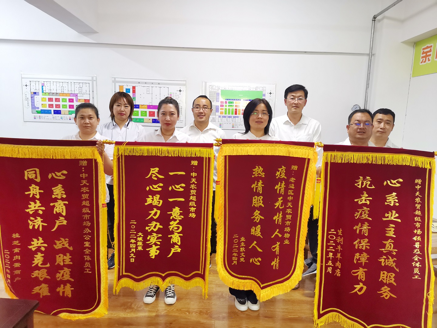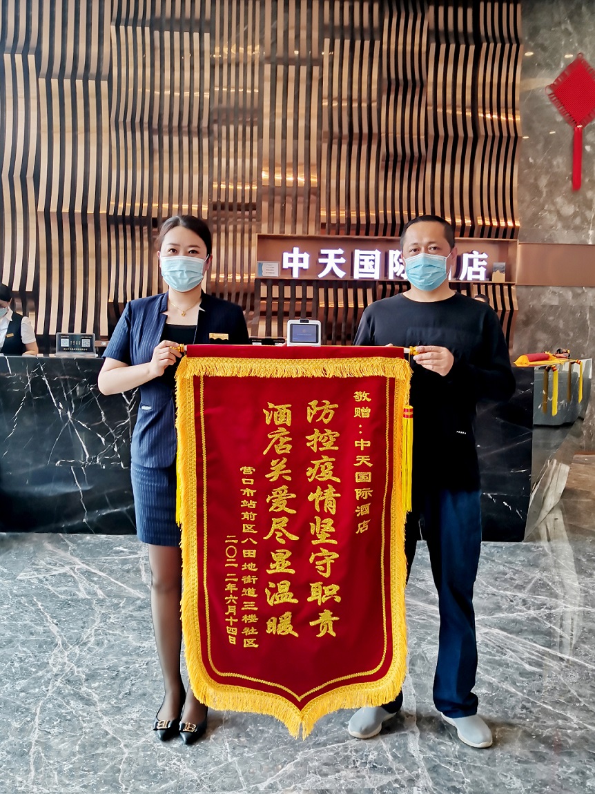 隨著營口市第二次疫情封控全面解除,一面面印有“疫情無情人有情,情系業(yè)主暖人心”、“疫情面前不畏艱險,業(yè)主至上暖至人心”的錦旗,一封封寫滿“感謝付出”、“隔離不隔愛”的感謝信,紛紛送至中天物業(yè)、中天農(nóng)貿(mào)及中天酒店。短短的十余天,各物業(yè)小區(qū)先后收到錦旗22面,農(nóng)貿(mào)公司收到錦旗4面,各單位收到表揚信30余封,微信群、朋友圈點贊10萬余次,這些閃亮的數(shù)字,都是中天人幫助業(yè)主和商戶攻克疫情的軍功章。一面錦旗,一份肯定,一份責任,也道盡了抗“疫”期間的溫暖。