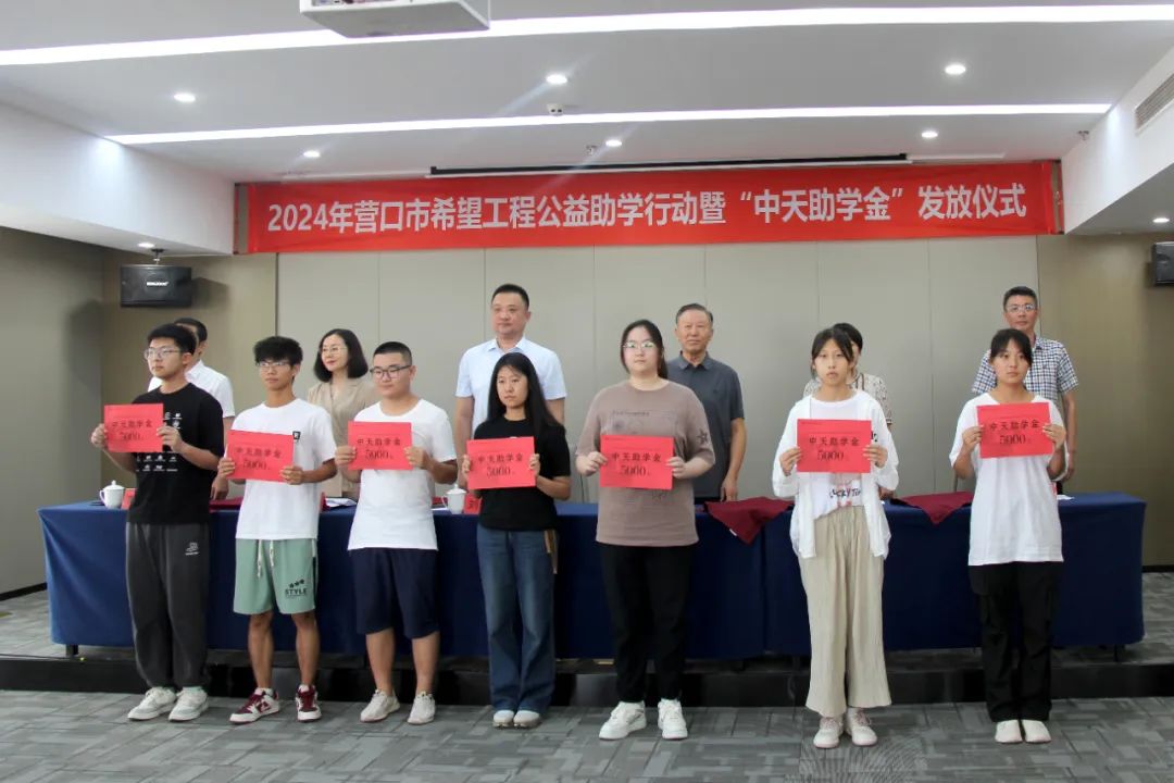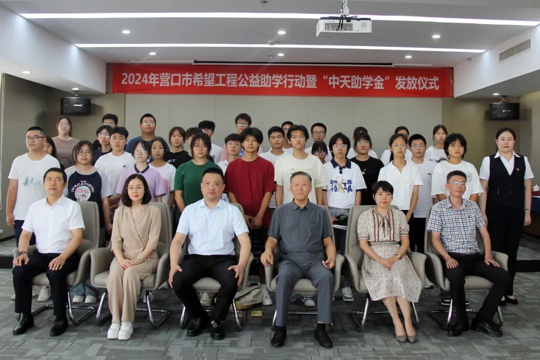 8月9日下午,2024年?duì)I口市希望工程公益助學(xué)活動暨“中天助學(xué)金”發(fā)放儀式在中天集團(tuán)總部會議室舉行。營口市團(tuán)市委副書記(主持工作)劉慶男,中天企業(yè)集團(tuán)董事長于寶權(quán)、總裁于洪波,營口市團(tuán)市委副書記梁嫚,營口市招生考試委員會辦公室主任崔玉琪,營口市慈善總會副會長黃渤以及獲得資助的32名學(xué)生,出席了本次發(fā)放儀式。