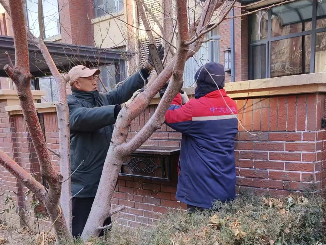 為有效應(yīng)對冬季低溫、霜凍等惡劣天氣對園區(qū)植被的影響,切實(shí)保障社區(qū)綠化景觀完好,近日,中天物業(yè)御景華庭項(xiàng)目啟動(dòng)冬季樹木防寒養(yǎng)護(hù)專項(xiàng)工作,組織物業(yè)團(tuán)隊(duì)全員聯(lián)動(dòng),為園區(qū)樹木披上“保暖衣”,以細(xì)致服務(wù)守護(hù)社區(qū)生態(tài)底色。本次防寒工作聚焦園區(qū)內(nèi)喬木、灌木等核心植被,物業(yè)團(tuán)隊(duì)提前制定專項(xiàng)方案,結(jié)合樹木品種、樹齡及生長狀況精準(zhǔn)施策。針對對幼樹及花灌木,除草繩纏繞外,額外覆蓋防寒布,同時(shí)修剪枯枝、病枝,減少養(yǎng)分消耗,提升樹木抗寒能力。