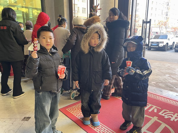 活動現(xiàn)場熱鬧非凡,業(yè)主們聞訊紛紛前來。大人和孩子們的臉上都洋溢著喜悅的笑容,大家有序排隊(duì)領(lǐng)取冰糖葫蘆。剛拿到手的冰糖葫蘆還帶著糖衣的脆響,咬上一口,酸甜的山楂果肉在口中化開,瞬間驅(qū)散了冬日的寒冷。工作人員一邊分發(fā),一邊與業(yè)主們親切交談,詢問大家的生活需求,傾聽大家對物業(yè)服務(wù)的建議,現(xiàn)場處處充滿著歡聲笑語。