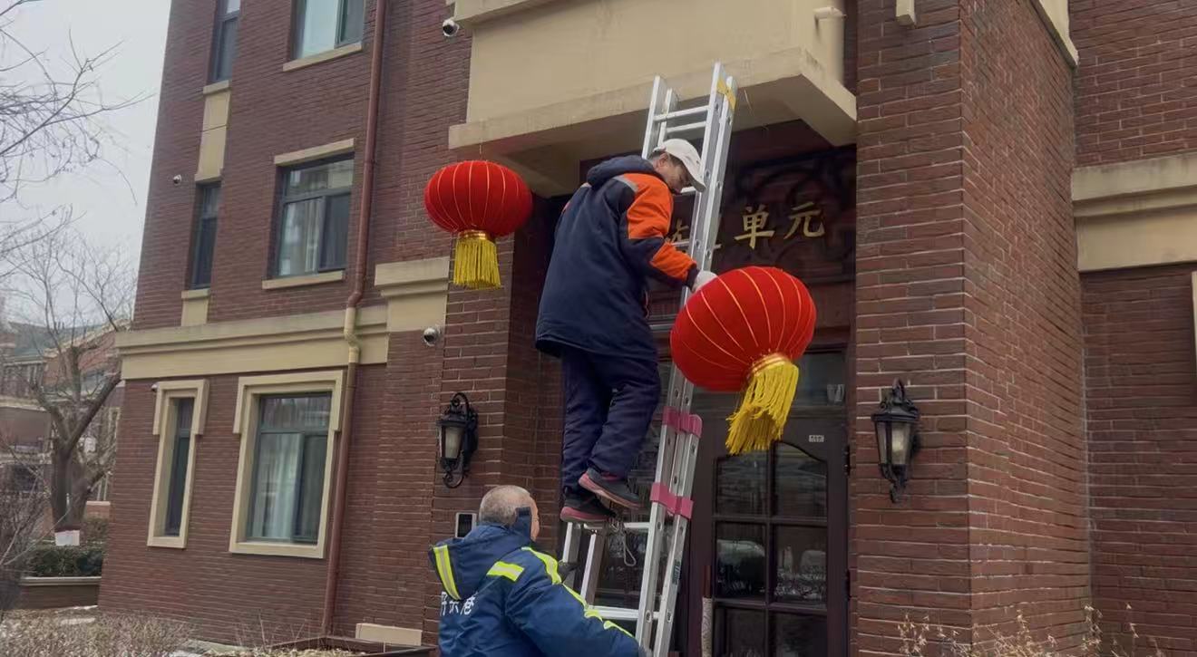 此次裝扮除了樓宇門頭,還在小區(qū)主干道、休閑廣場等區(qū)域,陸續(xù)懸掛近百盞紅燈籠,并鋪設(shè)數(shù)千米彩燈,打造“白天看燈籠,夜晚賞彩燈”的節(jié)日景致。不少業(yè)主路過裝扮現(xiàn)場,紛紛拿出手機(jī)記錄這喜慶的畫面,直言“看著紅燈籠和彩燈,元旦的味道一下子就濃了”。