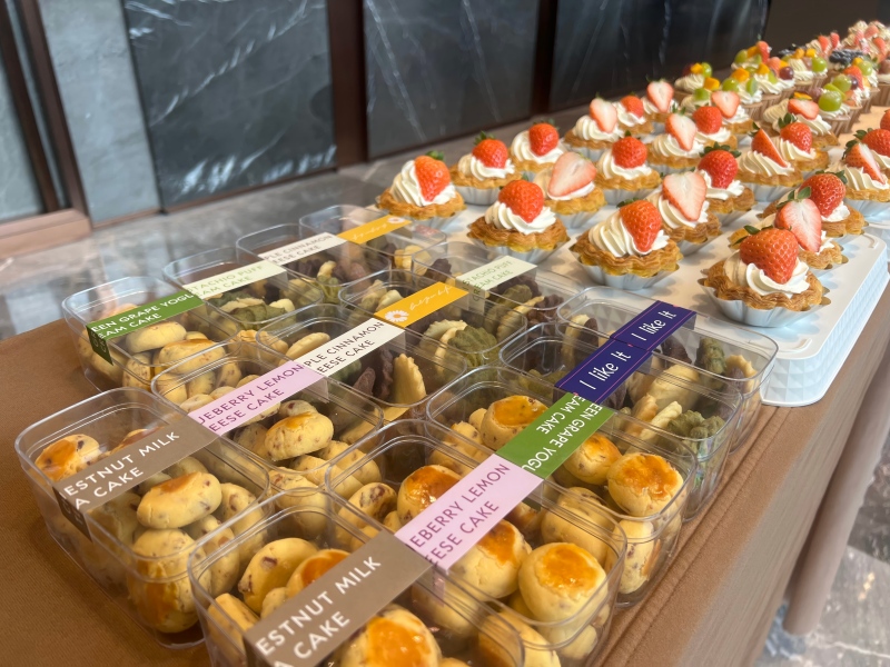 作為區(qū)域內的地標建筑,中天云璟此次活動的籌備,精準踩中了職場人的“年末節(jié)奏”:物業(yè)團隊提前準備了不易影響辦公的輕食甜品——剛出爐的曲奇裹著黃油香,紙杯蛋糕點綴著新鮮果粒;奶茶則調試至“適口不燙”的溫度,搭配便攜包裝,方便員工帶回工位享用?;顒蝇F(xiàn)場,工作人員身著整潔工裝、佩戴無菌手套,將甜品逐一分裝——金黃的曲奇在托盤里碼得整齊,與寫字樓現(xiàn)代簡約的大堂風格相映,既保持商務場景的整潔質感,又藏著細節(jié)里的溫柔。
