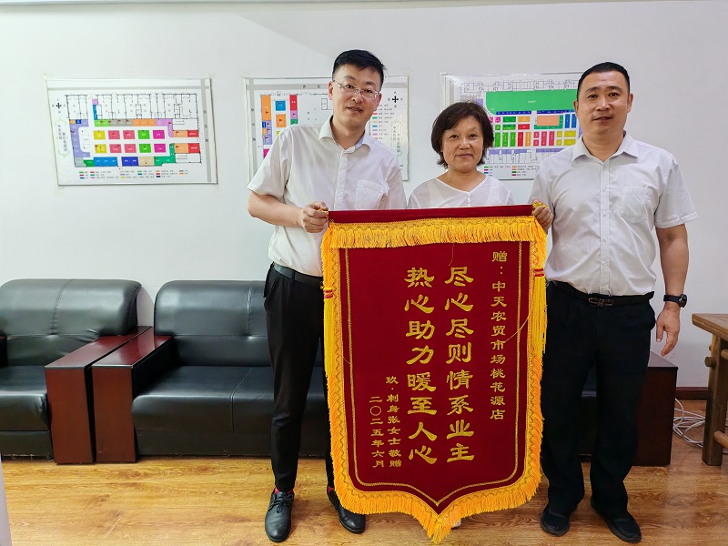 中天農(nóng)貿(mào)市場商戶向管理辦公室贈送錦旗