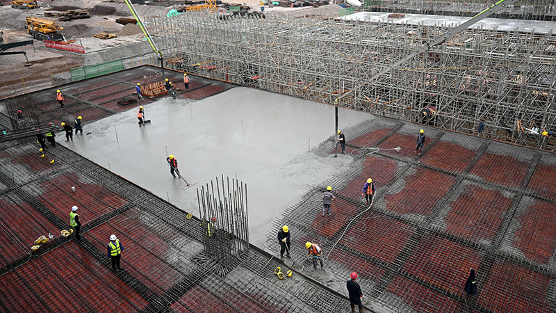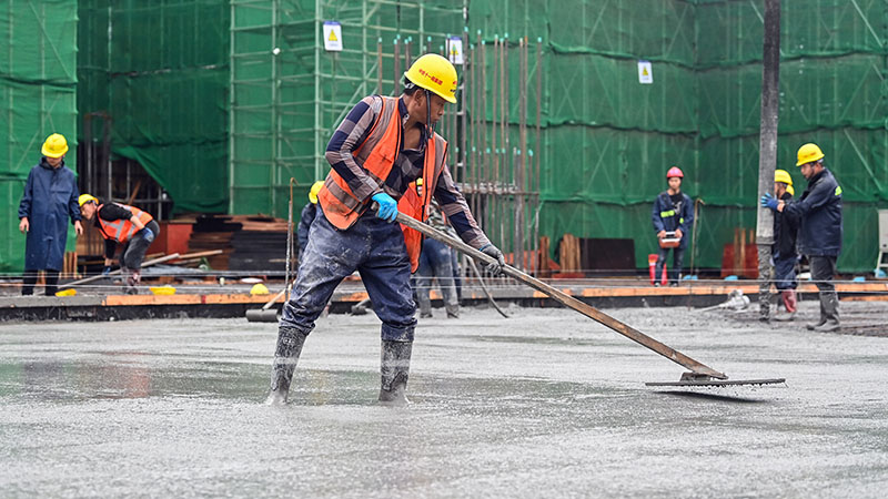 在玉林北站工地,工人將澆筑的混凝土鋪平(11月26日攝)。
